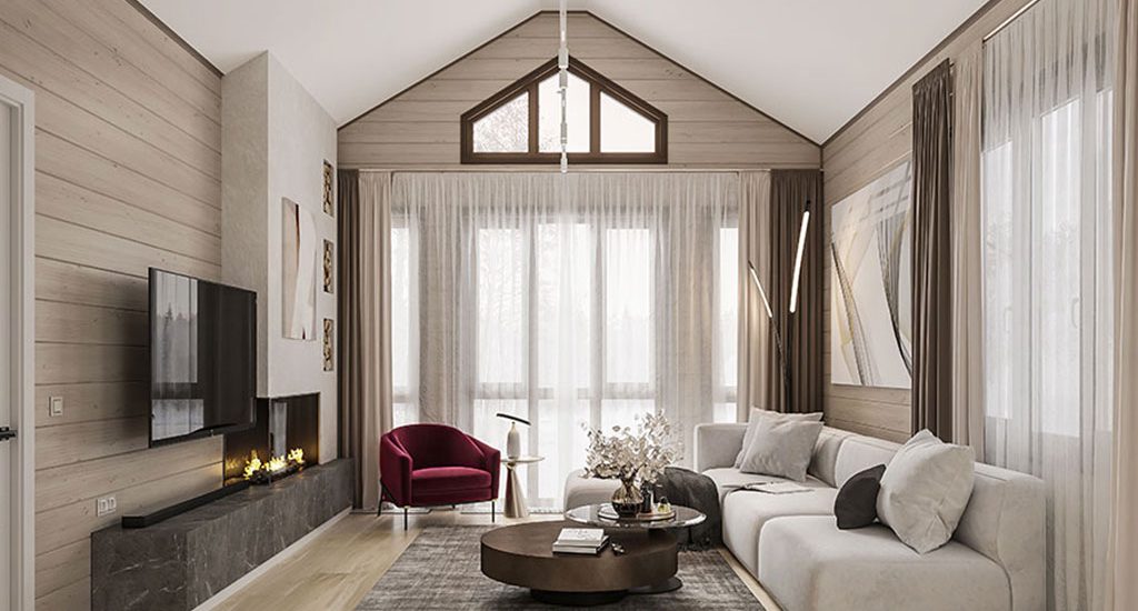 - Эстетическая привлекательностьВторой свет дает карт-бланш на смелые интерьерные решения. Подвесная люстра на длинном подвесе, многоуровневые балки, вертикальный сад — все это становится органичной частью композиции. Я часто предлагаю клиентам обыграть «пятую стену» — то есть потолок — фактурной штукатуркой или деревянными панелями. Камин в таком пространстве превращается не просто в отопительный прибор, а в архитектурный акцент, вокруг которого выстраивается вся композиция мебели.
